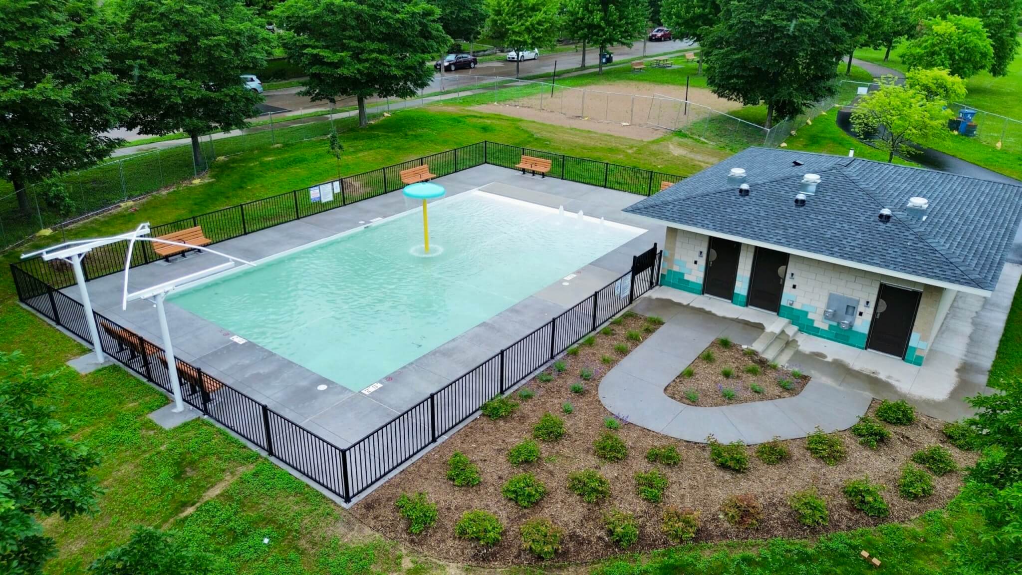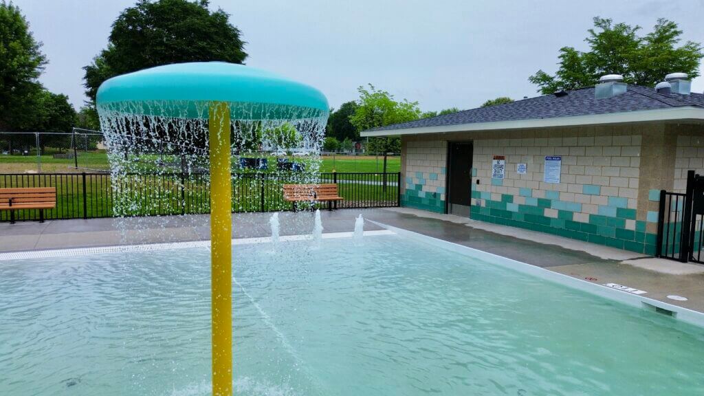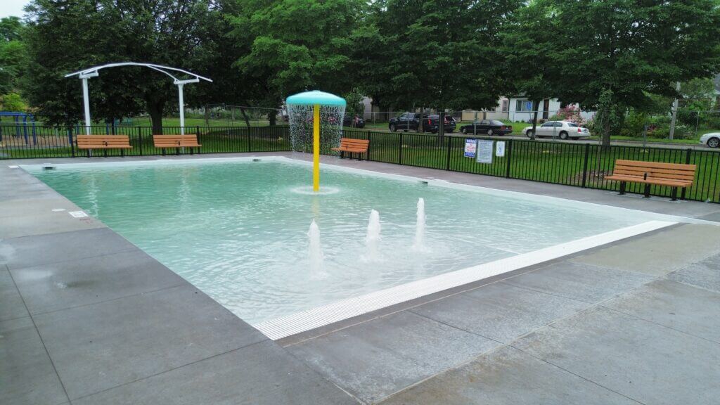 Neighborhood Wading Pool Construction. Pool features a few play features, but most importantly a beautiful place for the neighborhood kids to gather and cool off on the hot summer days.